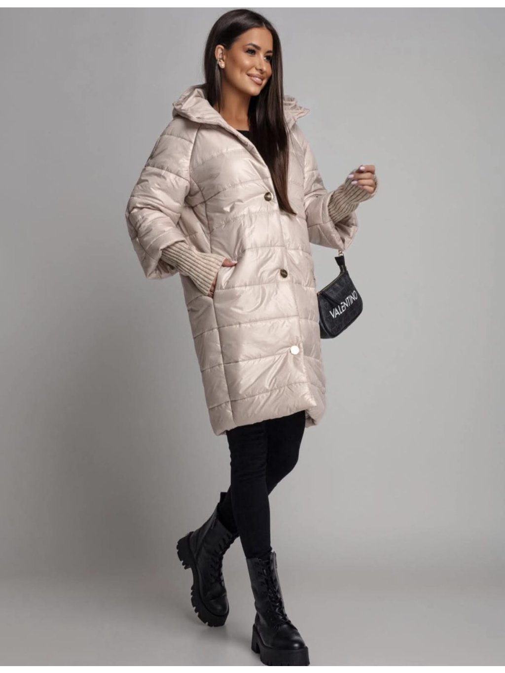 Dizajn so so širokými rukávmi a pletenými manžetami je štýlový detail..