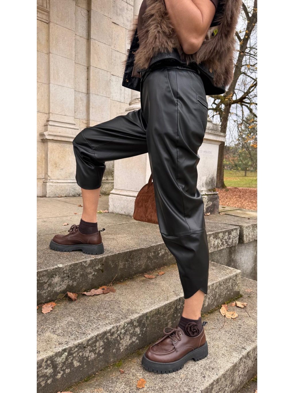 Dámske koženkové nohavice VANG - CROPPED FIT čierne