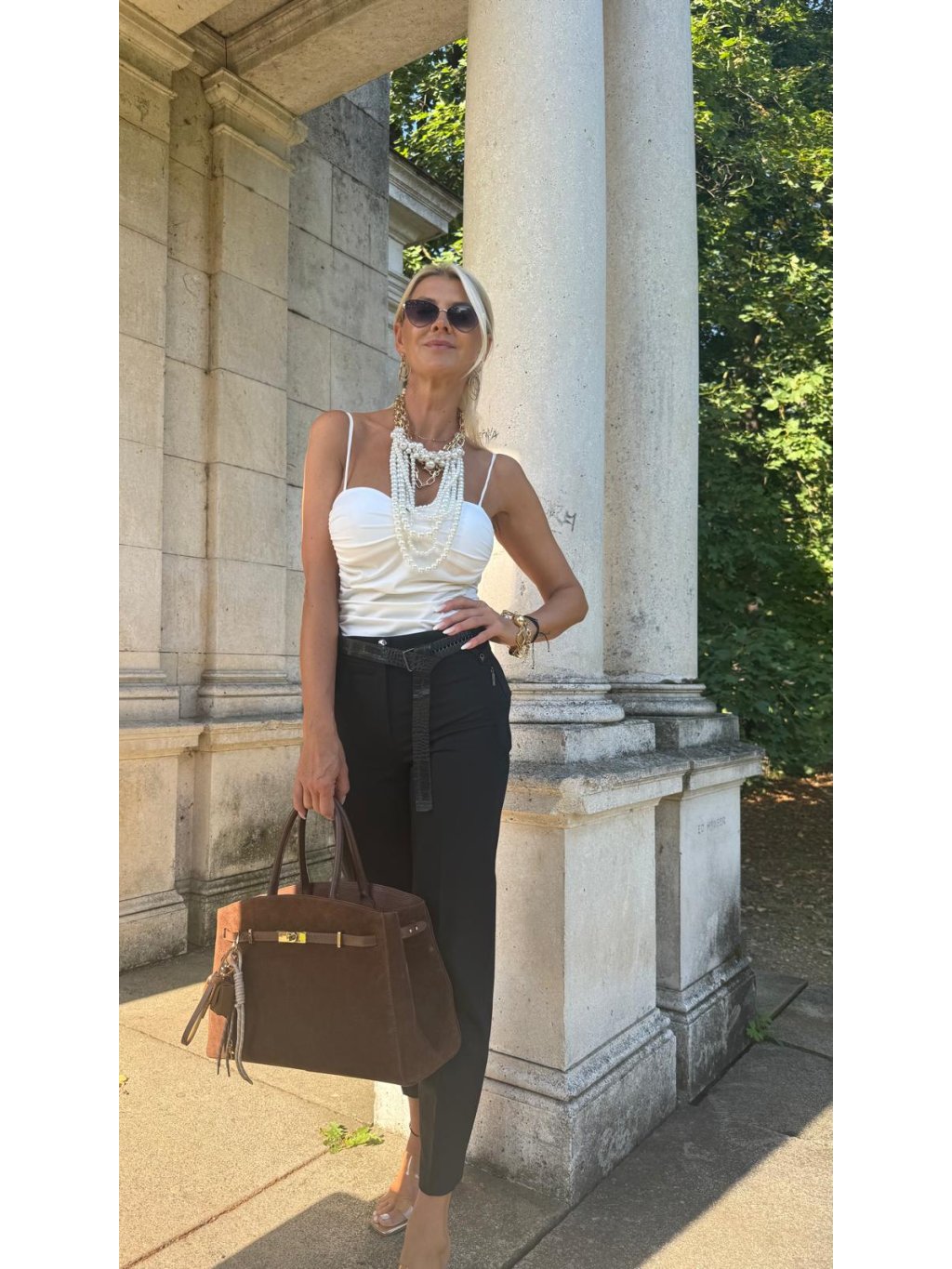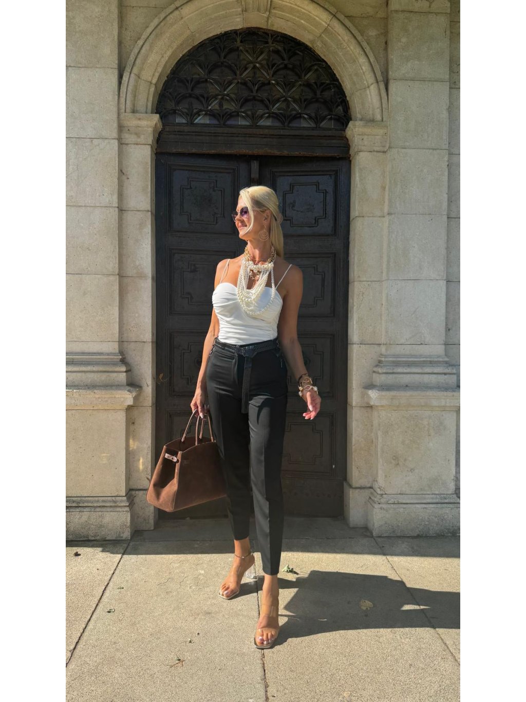 Elegantné čierne dámske nohavice voľnejšieho strihu s opaskom.