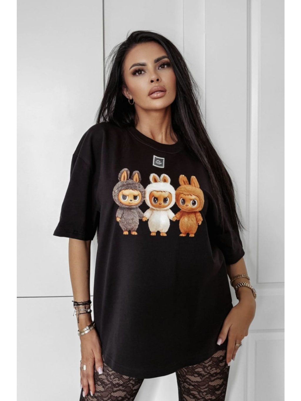 Dámske oversize tričko s krátkym rukávom a voľného strihu .Model s veľkou potlačou na prednej strane trička.