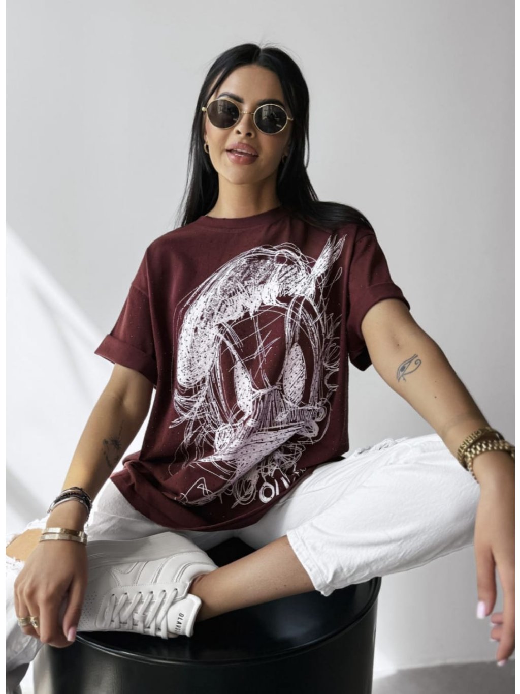 Klasické dámske tričko s krátkym rukávom a grafikou na prednej strane trička zdobené krištálikmi.