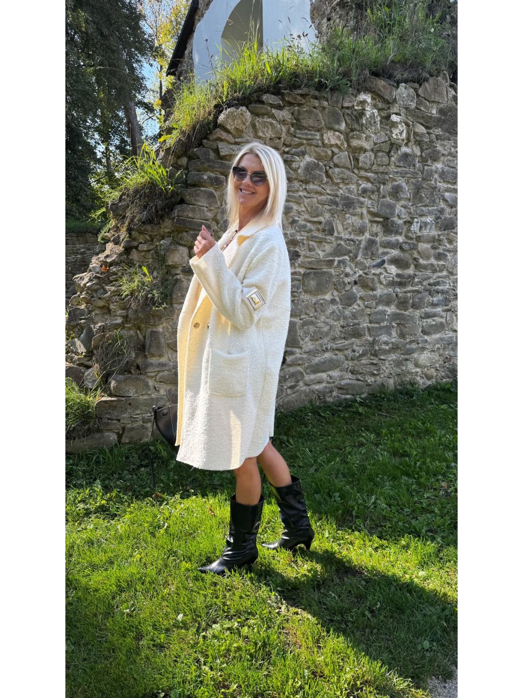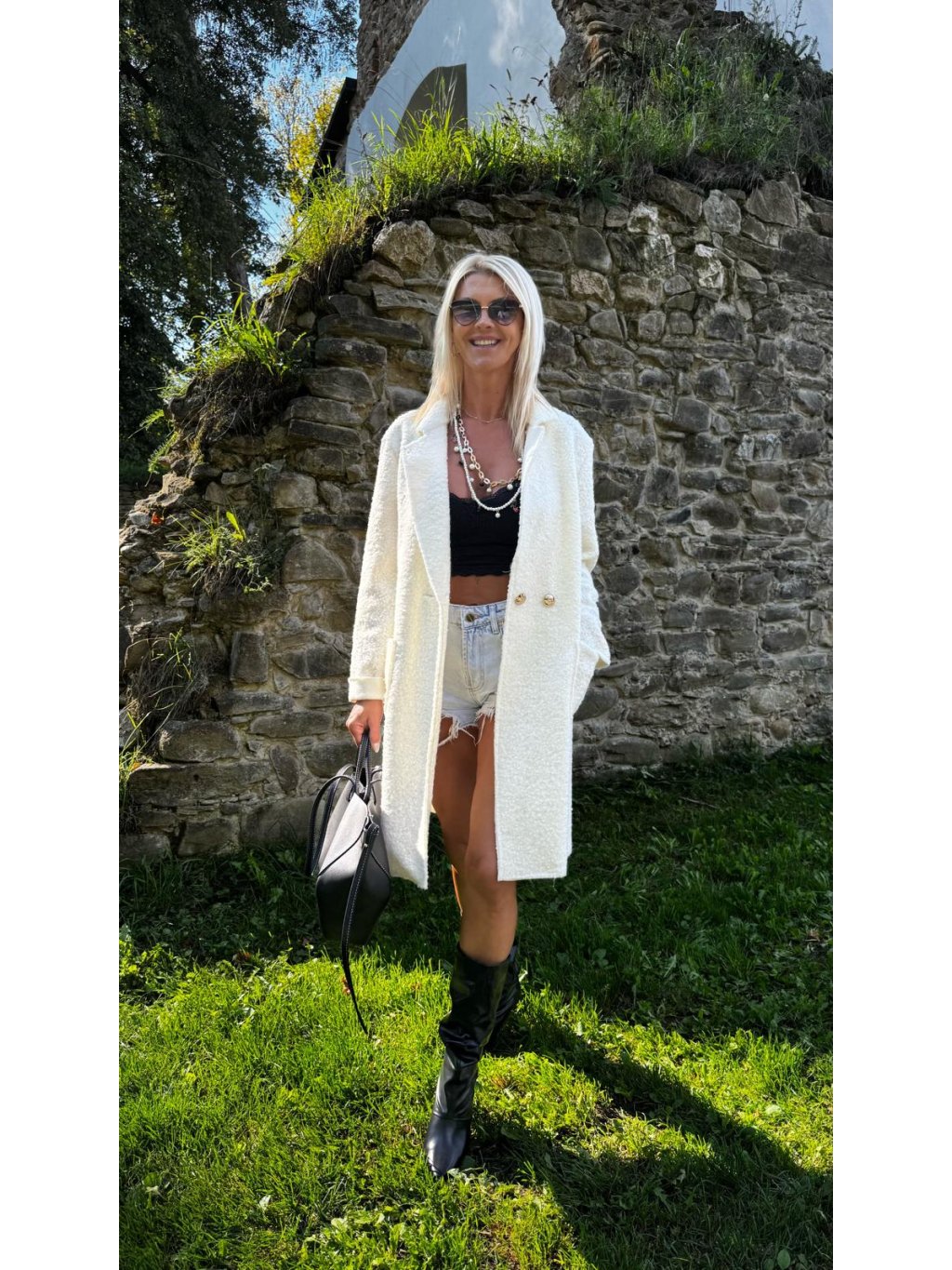 Štýlový hrejivý kabát s textúrou s elegantnými detailami a strih ,ktorý lichotí postave.