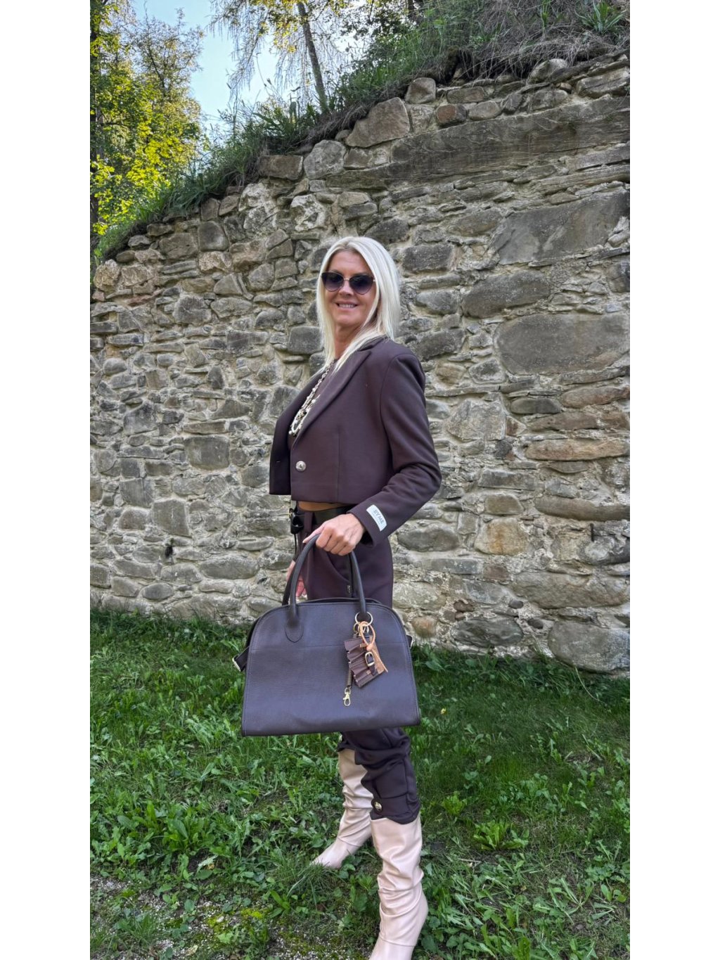 Elegantná kabelka z hnedej kože, ktorá pôsobí nadčasovo a ležérne.