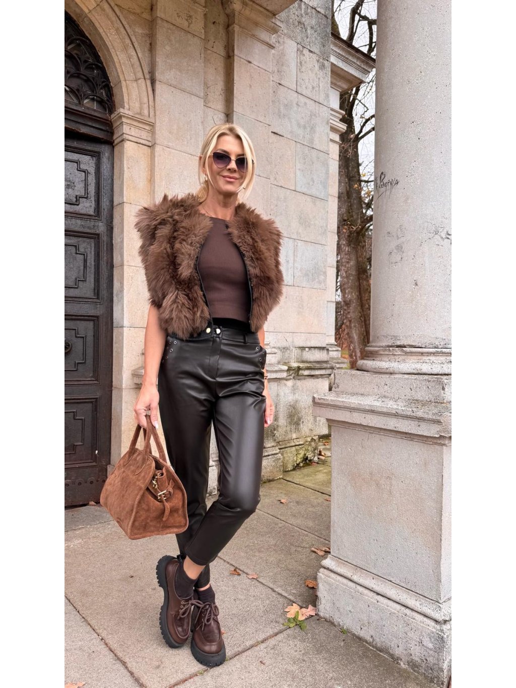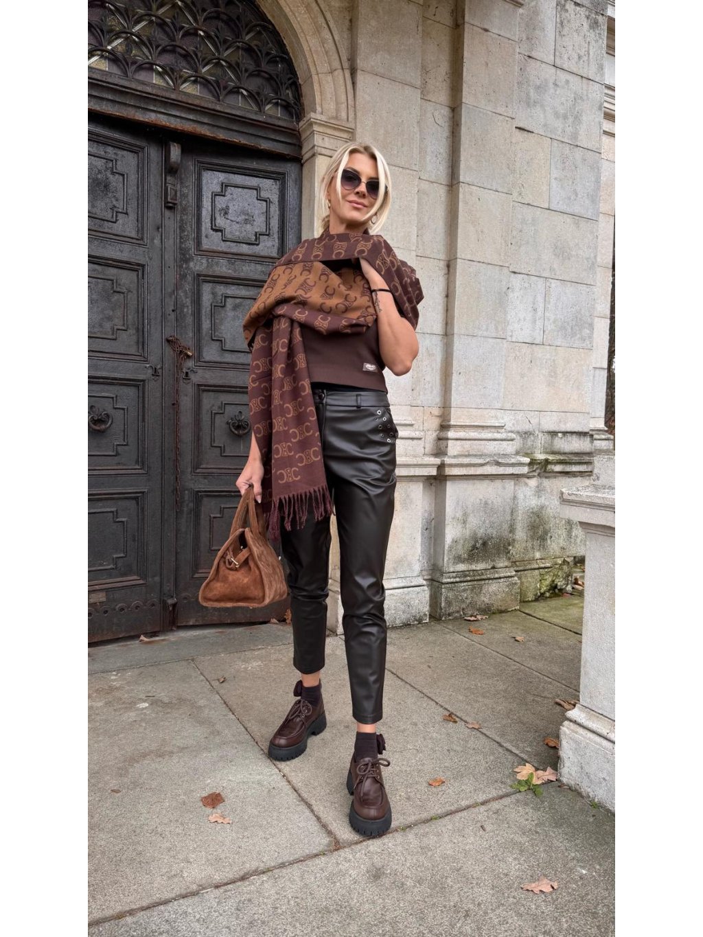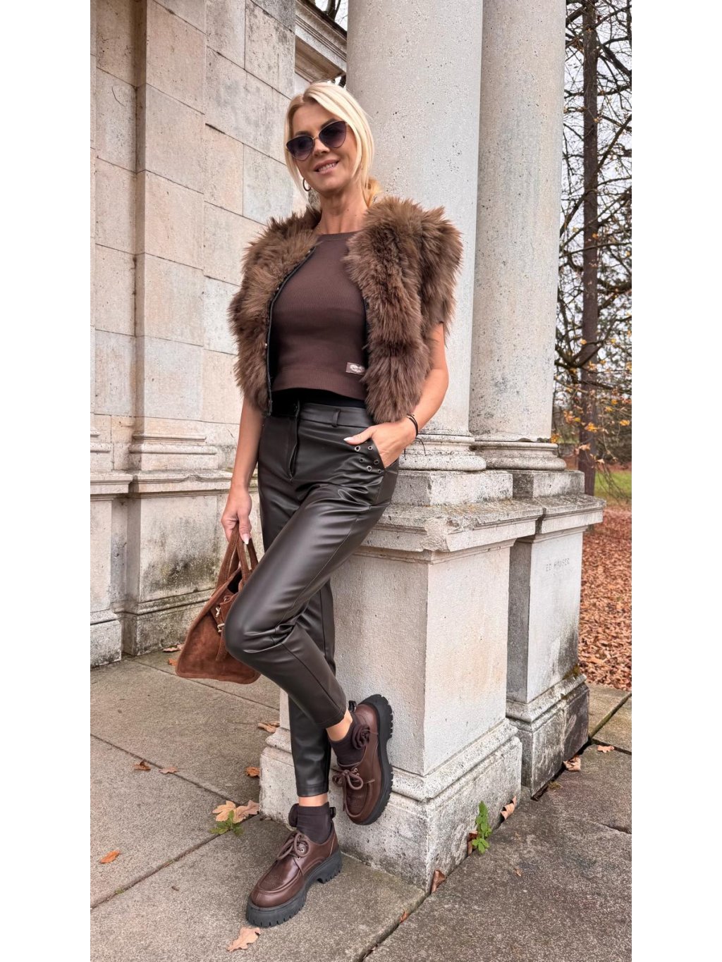 Koženkové nohavice VANG hnedé
