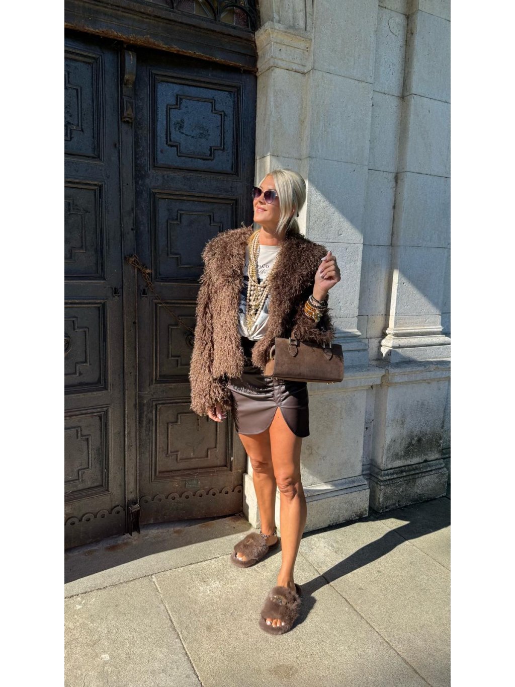 Kožuštek v tmavohnedej farbe má výraznú strapatú štruktúru.